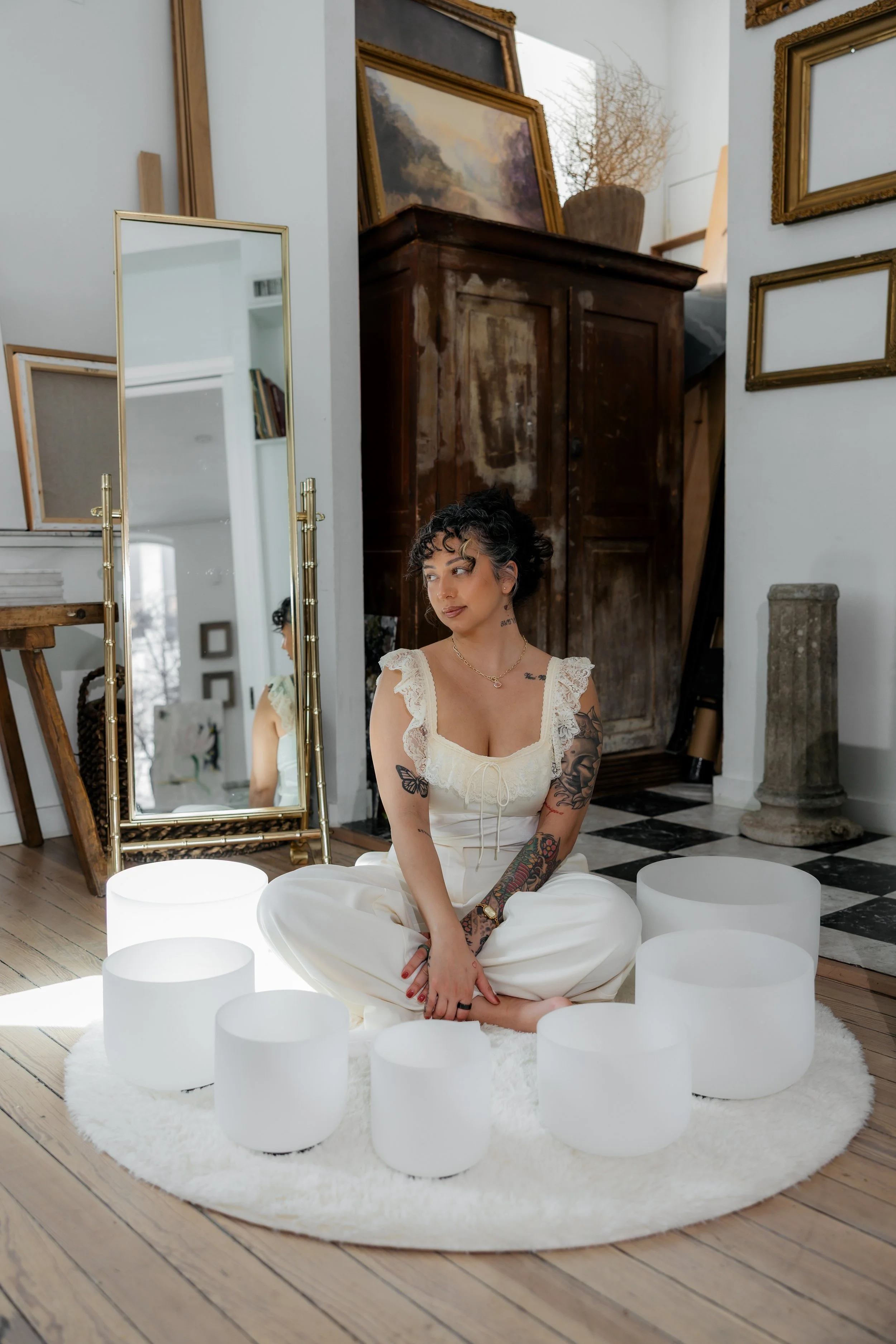 Everything I offer on the mat, through sound, or on canvas is an extension of my lived experience and my devotion to healing from the roots up. My hope is that when you engage with my work, you feel supported, grounded, and reminded of your own inner wisdom.